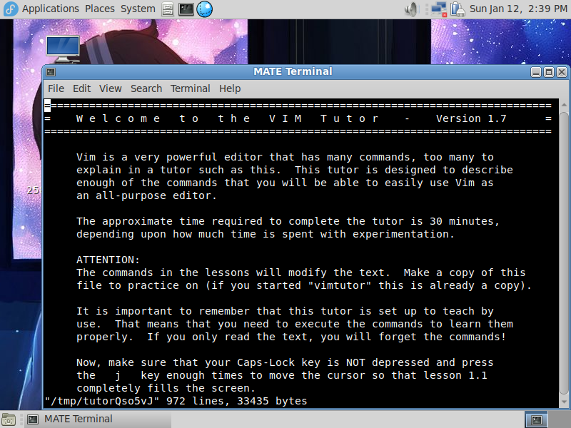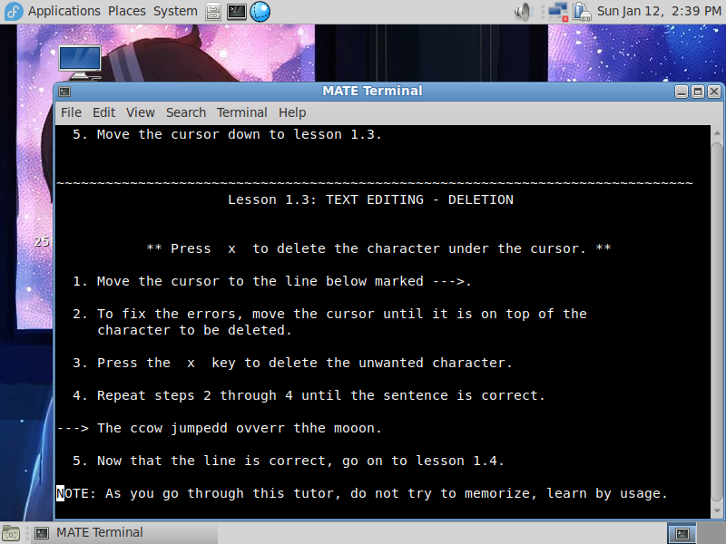 vimtutor Welcome to the VIM Tutor vimtutor Lesson 1.3: [...] ** Press x to delete the character under the cursor. **